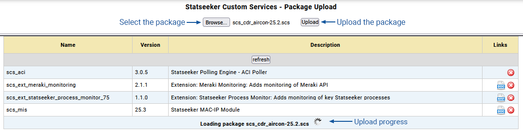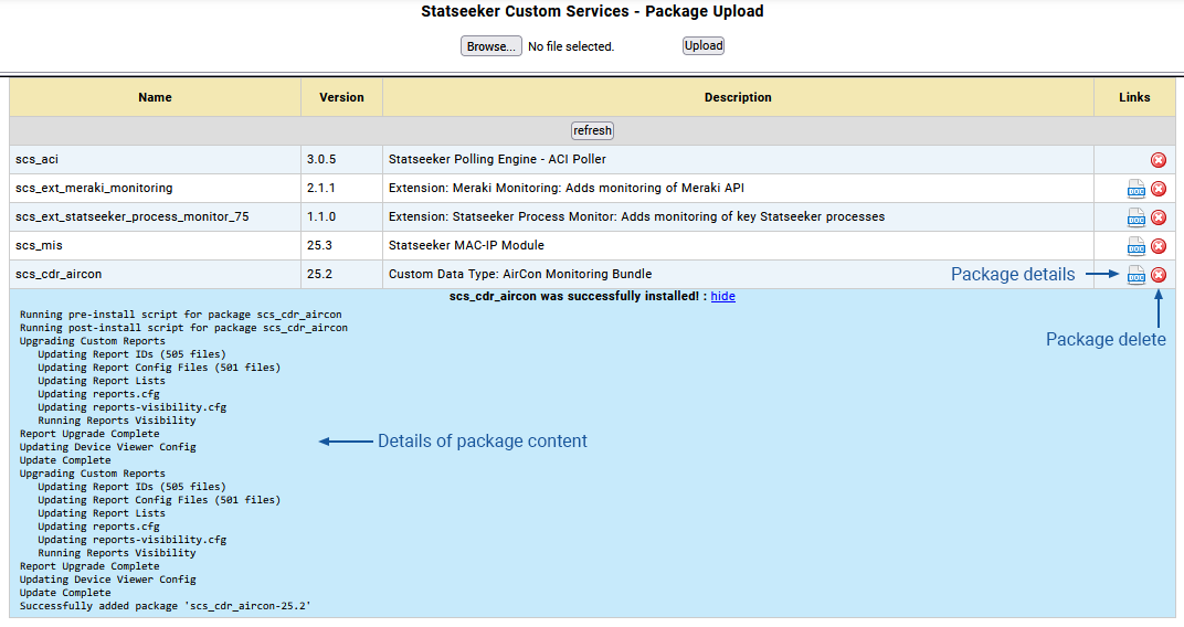 • Select Administration > Statseeker Custom Services > Manage Packages