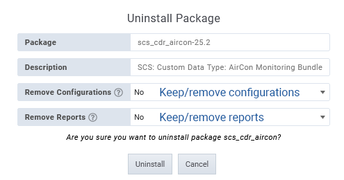 • Specify whether or not to remove the configurations and reports associated with the data types included in the package