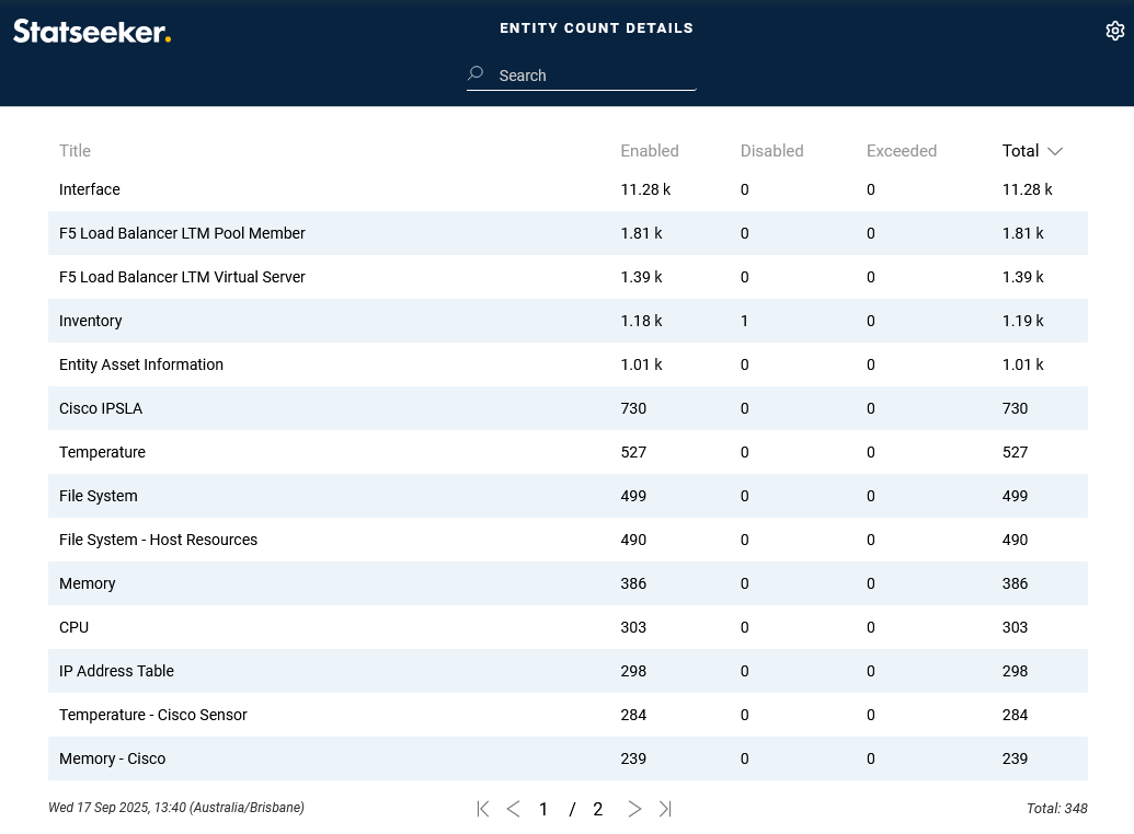 A comprehensive entity (both licensed and un-licensed) count breakdown is provided by the Entity Count Details report, see: