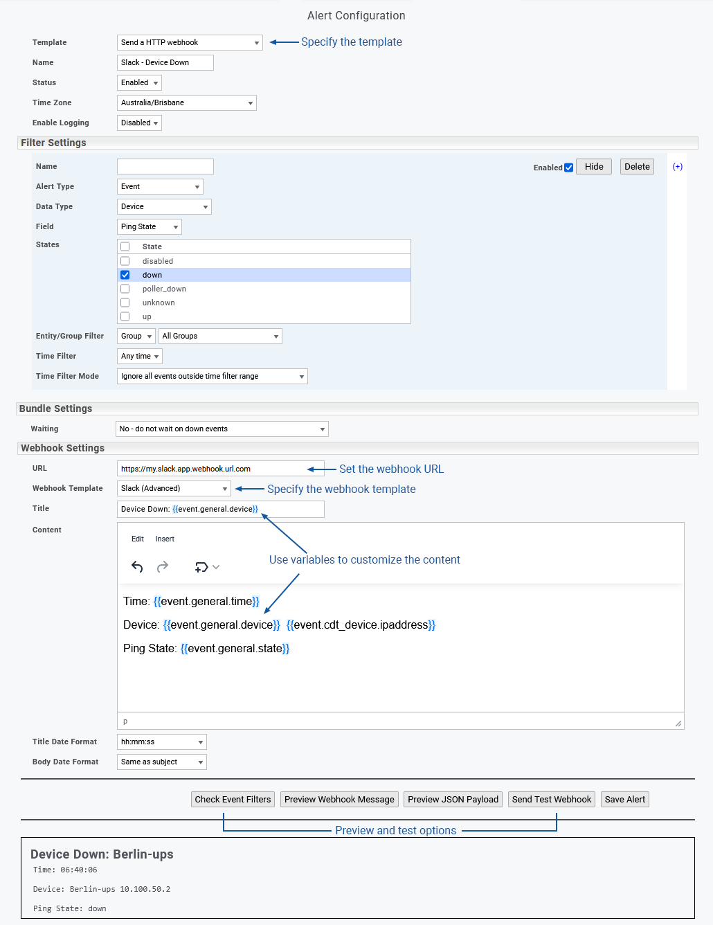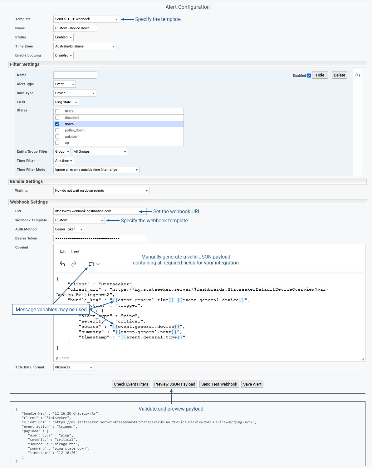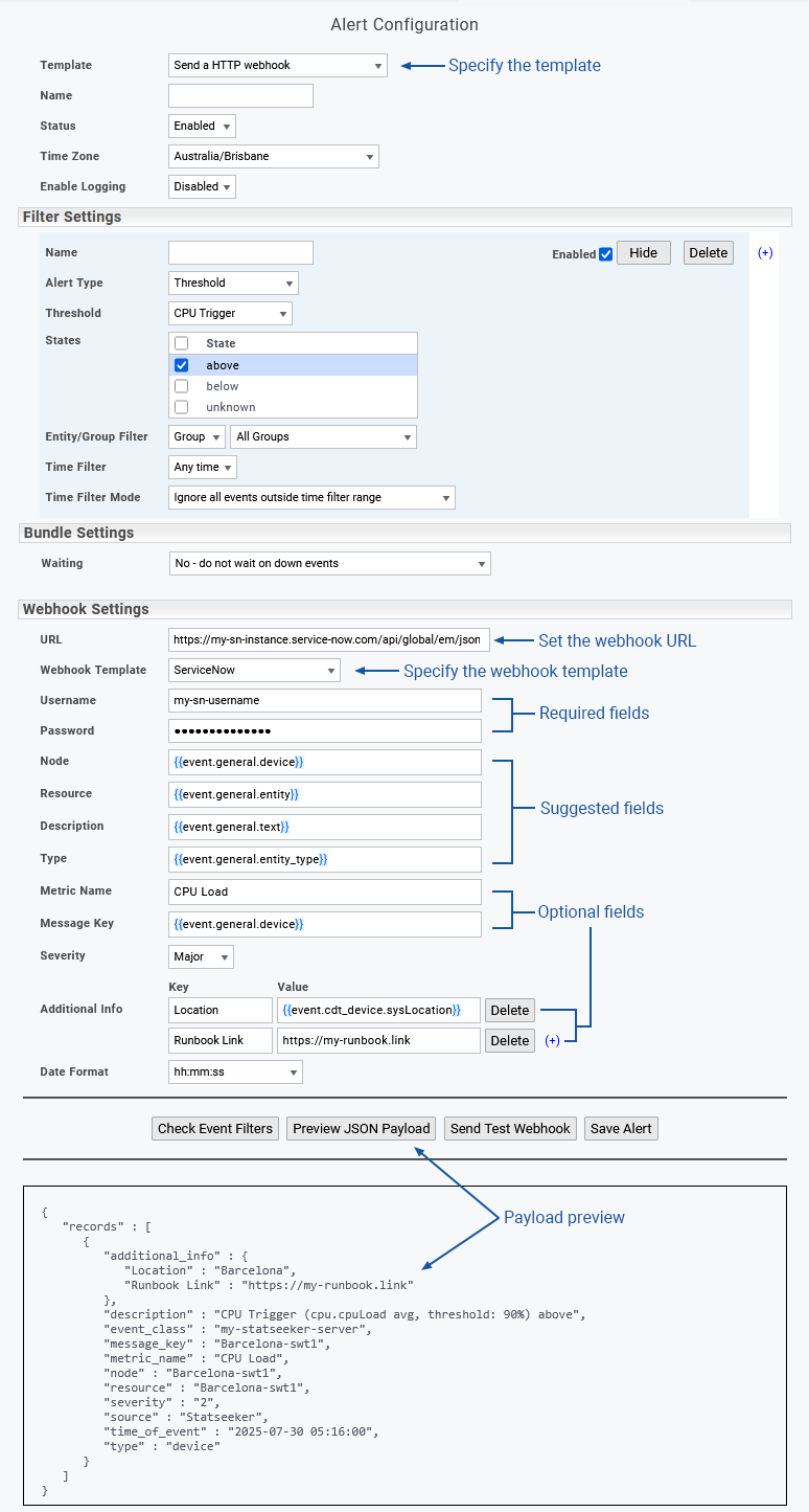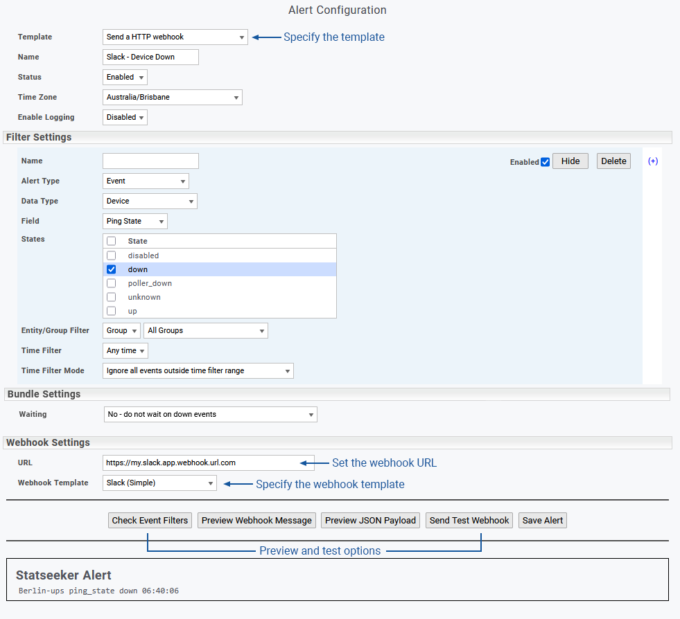 Note: Webhook alerting is licensed separately from the core Statseeker product. Contact Statseeker Sales for access to this feature.