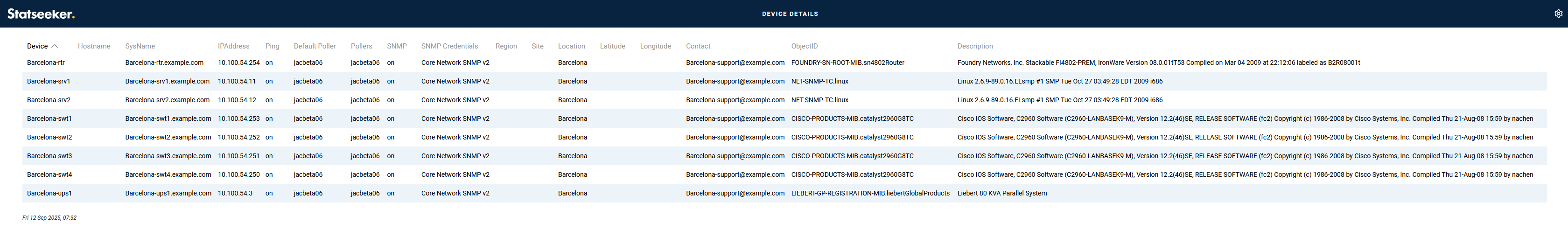 - SNMP ObjectID, sysDescription and contact details for the person/team responsible for the device management