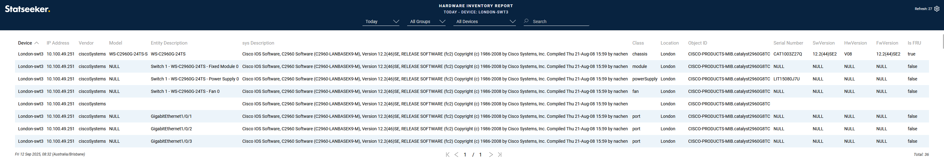 Clicking on the Device Name for an entry in the report will launch the Device Viewer. From there you can run a large number of reports including the: