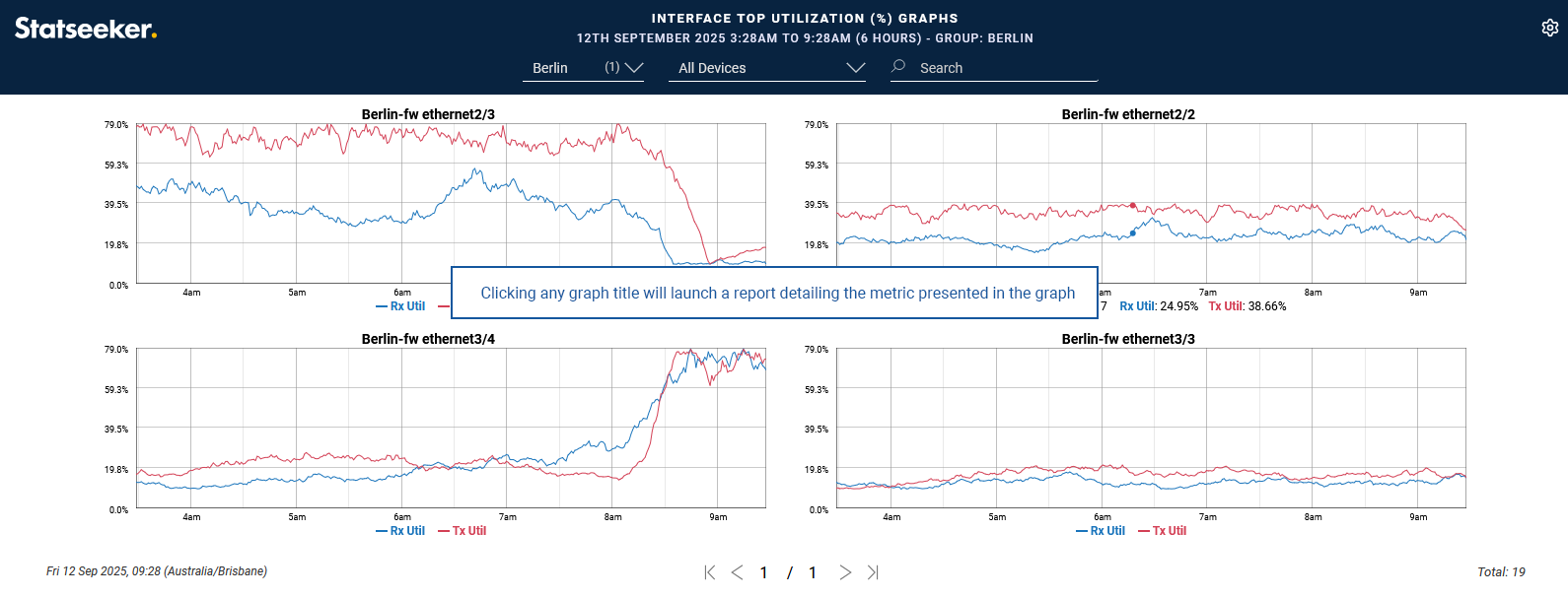 Statseeker offers a real-time poller which can query an interface every second, providing visibility to what is currently occurring on the interface. This functionality can be employed when trouble-shooting an issue on the interface, or a traffic issue on your network - real-time feedback on the effects of your actions will greatly improve your ability to both identify, and resolve an issue.
