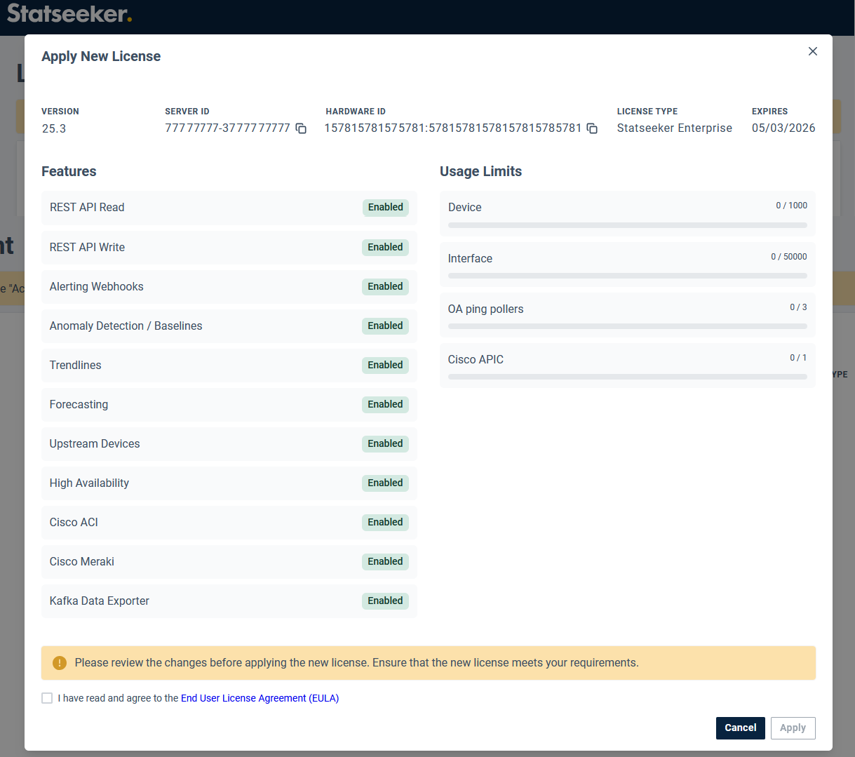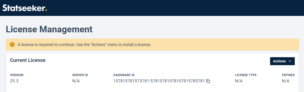 Once logged in to the web interface, you will be prompted with the Statseeker License Management screen.