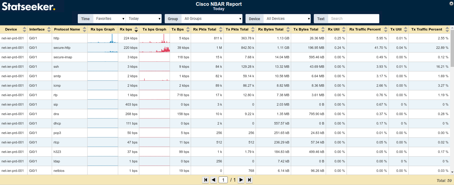 Statseeker can monitor, report, threshold and alert on your existing Cisco Network-Based Application Recognition (NBAR) implementation.