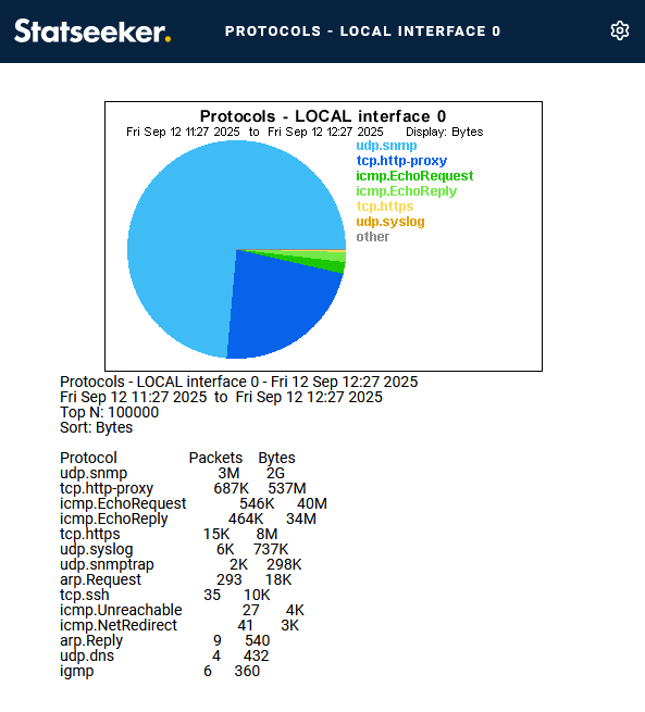 Statseeker provides NetFlow reporting via the Traffic Analyzer, a core component of Statseeker, which analyzes data collected from your configured NetFlow feeds. The Traffic Analyzer can interrogate data from NetFlow v5,7,9, and 10/IPFIX and sFlow data sources. For more information on configuring NetFlow data sources and collectors, see Netflow Configuration.